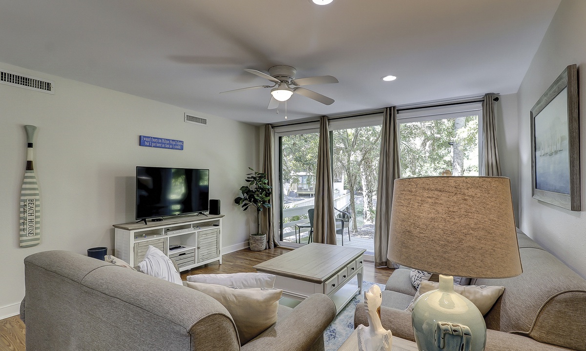 Seascape Villa 3090 is an updated townhome located in South Forest with bright and airy interiors. This 2 bedroom, 2 bathroom Seascape Forest Beach vacation rental features an open floor plan and an expansive outdoor living space with island views.