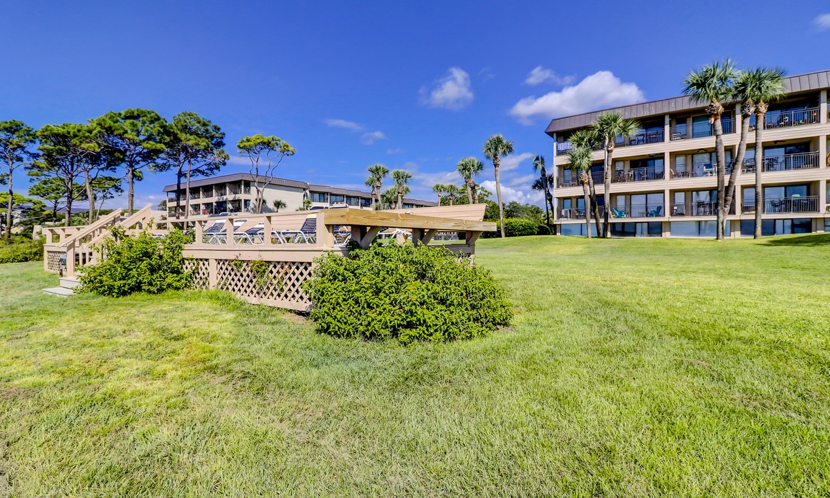 Sea Side Villas is a gated community located right in the heart of Hilton Head’s premiere South Forest Beach with 2 pools, a grilling area, sun deck and swing. Elevators are located in both buildings and laundry rooms are found on every floor (coin operated machines). The complex has parking free under the buildings and the surrounding gated, secure community.