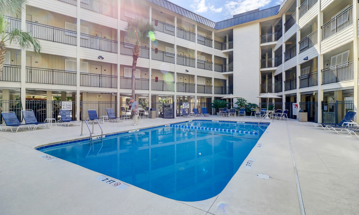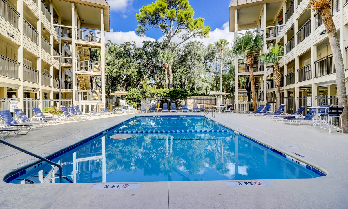 Seaside Villas is a gated community located right in the heart of Hilton Head’s premiere South Forest Beach with 2 pools, a grilling area, sun deck and swing. Elevators are located in both buildings and laundry rooms are found on every floor (coin operated machines). The complex has parking free under the buildings and the surrounding gated, secure community.