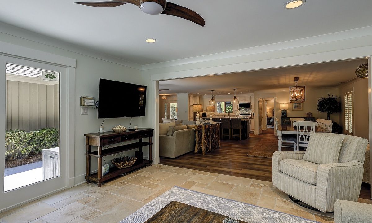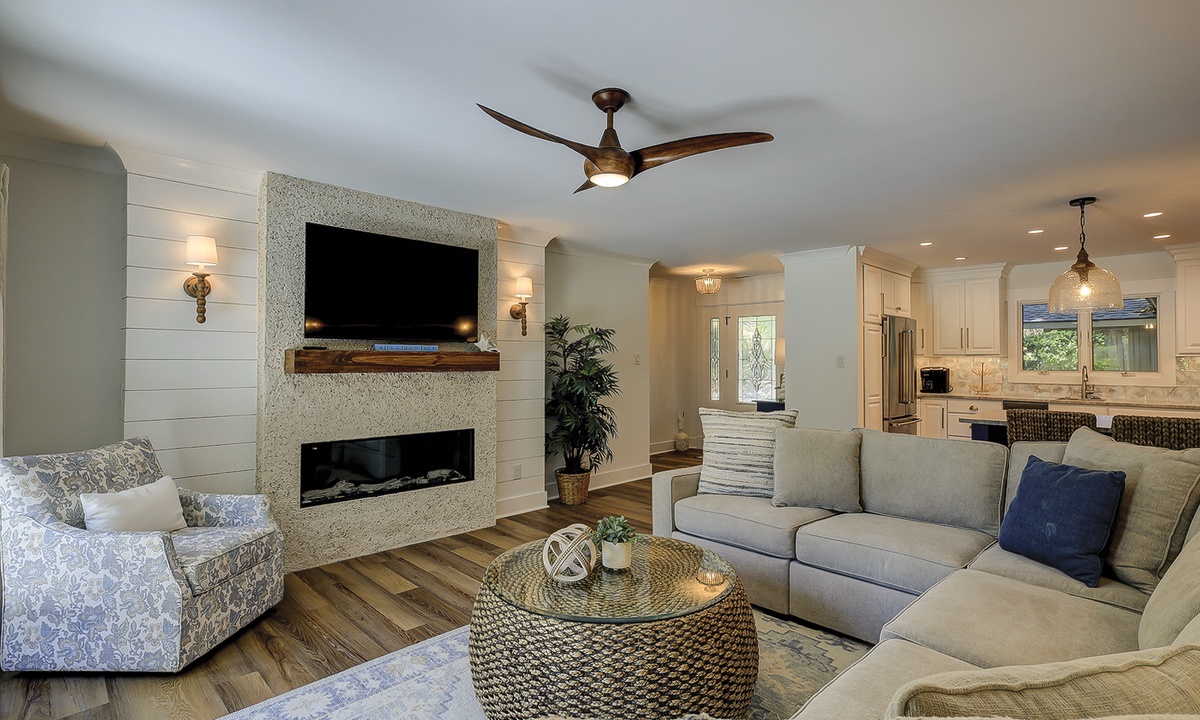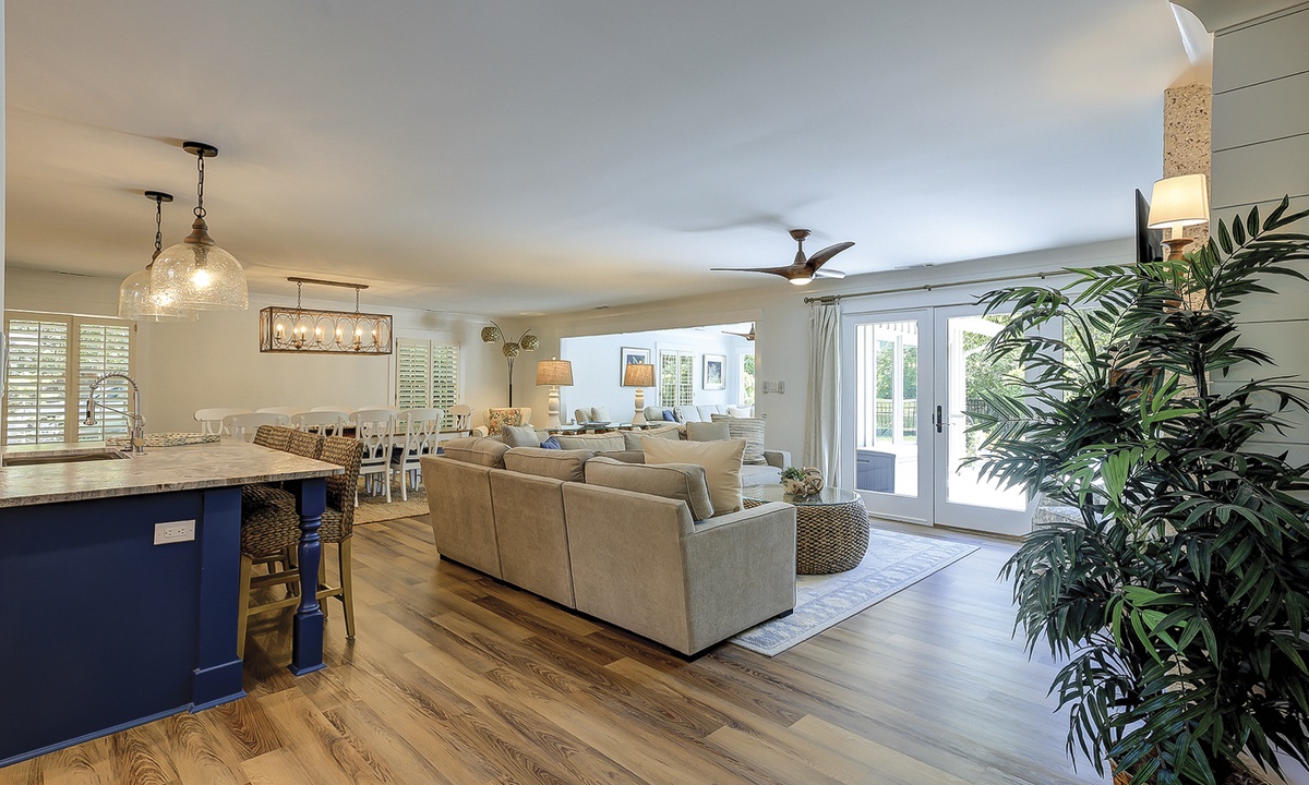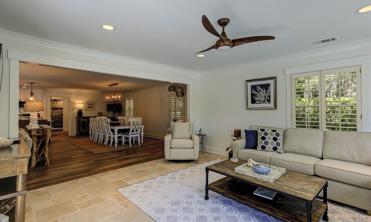 Rest and relaxation await at South Live Oak 25, surrounded by tranquil lagoons on Hilton Head Island! This beautifully renovated 4-bedroom, 4-bathroom Hilton Head Sea Pines home offers a spacious open floor plan and a fantastic outdoor area, perfect for family gatherings. This stair-free home provides vacationers with two living areas, wood and tile flooring throughout, all new furnishings, and plenty of space to spread out.