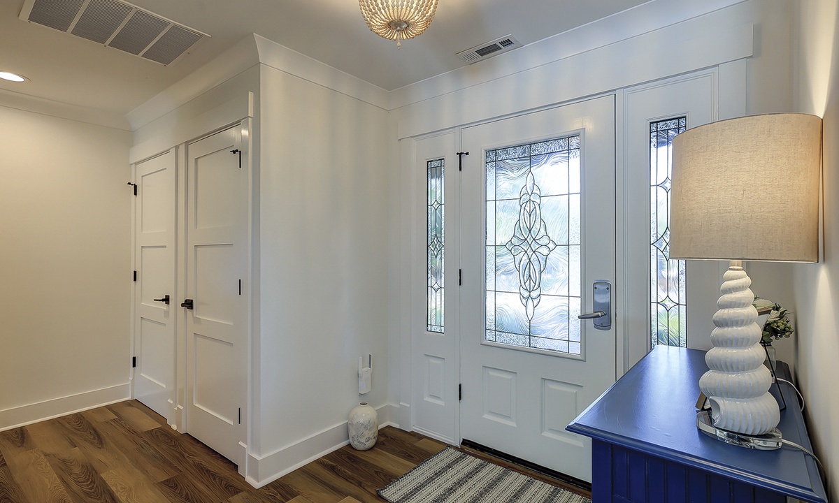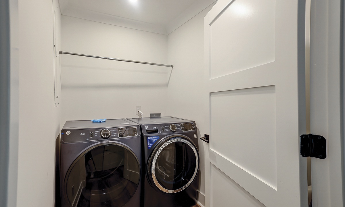 A laundry room is located off the entryway, featuring a brand-new washer and dryer set for your convenience.