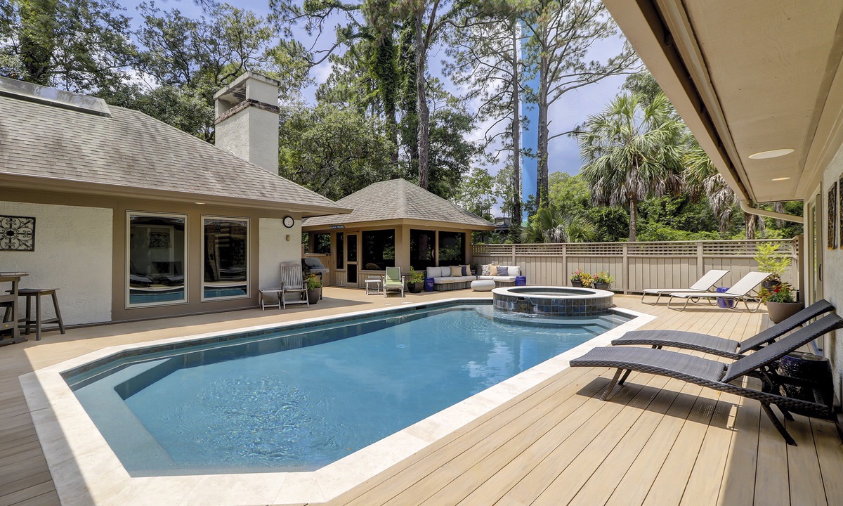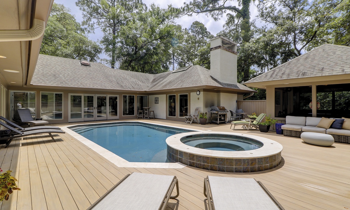 By far best vacation home and rental company we have used in Sea Pines. Home was more beautiful than pictured, and pool and spa were amazing. Behind the home there is a concrete walkway path that leads to a bridge, and in just 3 minutes you are on the beach. And the deer next to the beautiful landscape was extra special to watch. We absolutely loved the area at bottom of steps with shower and storage space for all the beach gear. The home was very clean and well maintained and kitchen was more than equipped with everything we needed for all our meals. Hilton Head Exclusives by Sunset Rentals was wonderful to work with. Louise was always so very helpful and answered all our questions. We even forgot a Kindle in a drawer, and they are returning to us. Can’t say enough about how wonderful our experience was. Thank you to homeowners for sharing your home with our family!!!