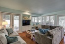 Separating the dining room and the living room is a dry bar that can serve as the perfect place to lay hors d'oeuvre if you have friends over for dinner. The large windows and sky lights help bring the outdoors in while you enjoy a family meal together. The living area is equipped with comfortable seating, including a queen sleeper sofa, flat screen TV/DVD and bench nook perfect for reading a good book. The outside deck has a cafe table for two along with an outdoor dining table with four chairs.