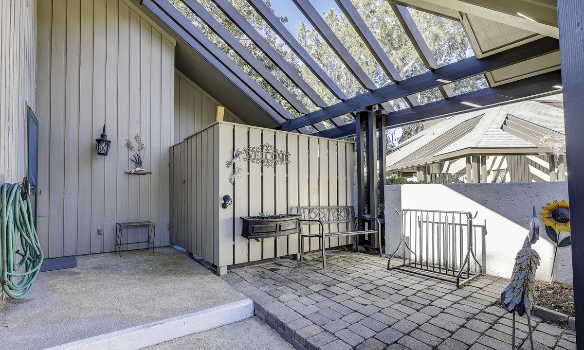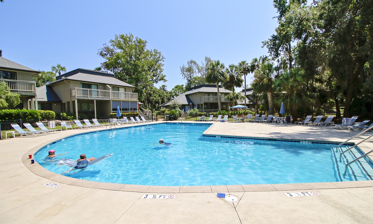 The Tennismaster villa complex is set in lush landscaping in Hilton Head’s Shipyard with an onsite pool and only a short 10 minute walk or quick bike ride on the trails to the beach. All beach distances are measured from the center of the complex.