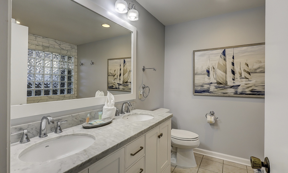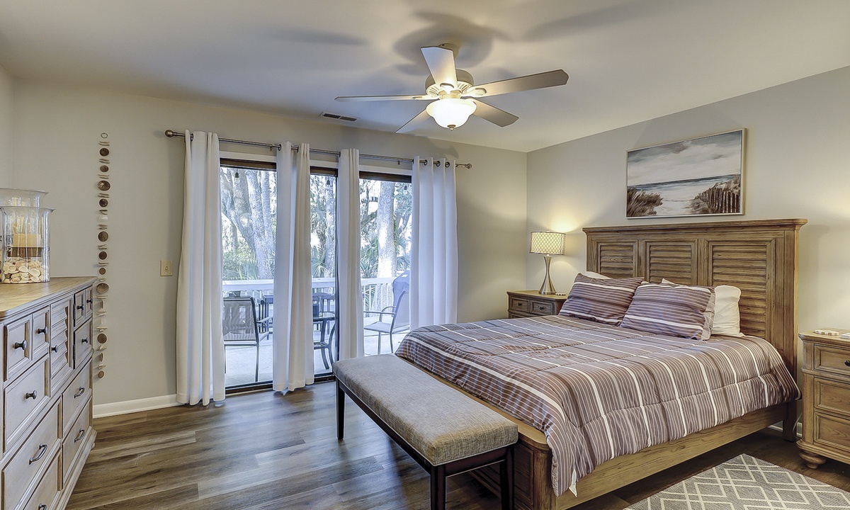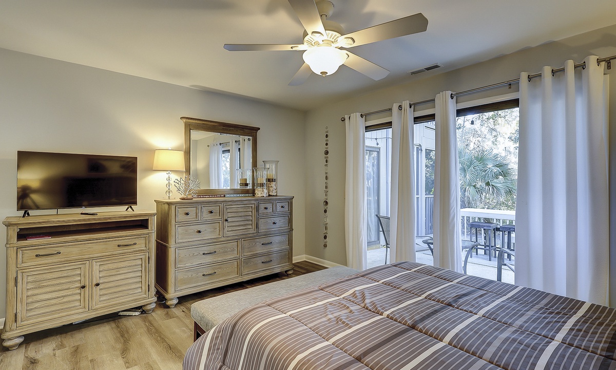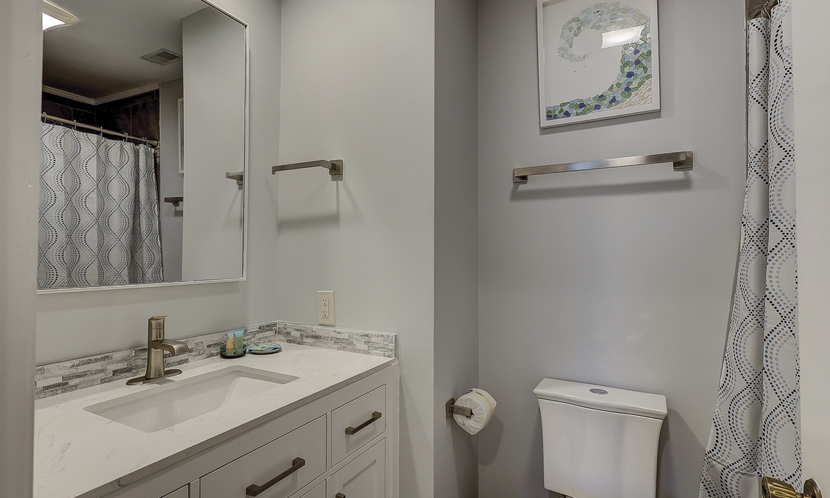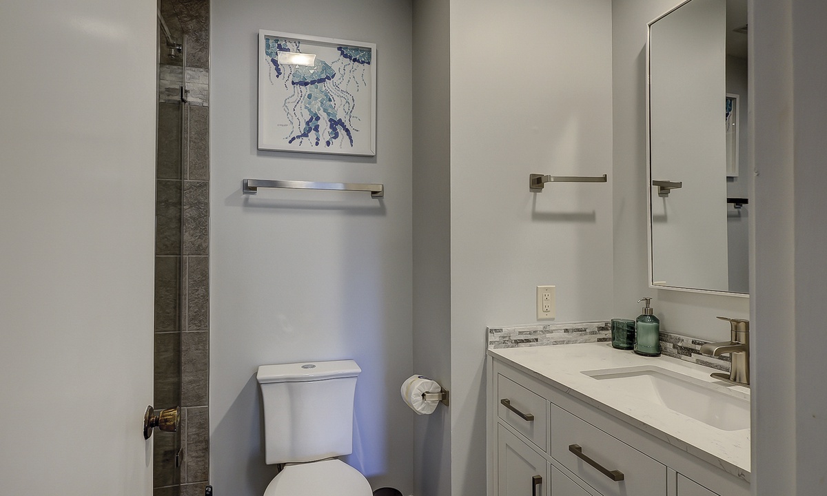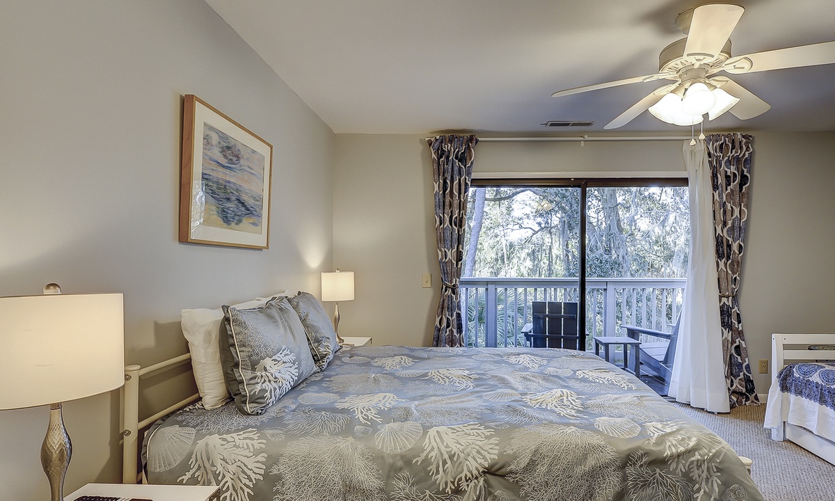 The 1st bedrom is located on the main level and has a queen bed and newly renovated bathroom with a large walk in shower. The remaining two bedrooms are on the second level, both with private balconies. One bedroom has a queen bed, day bed with trundle and a tub/shower combination. The other bedroom has a king bed and a walk-in shower.