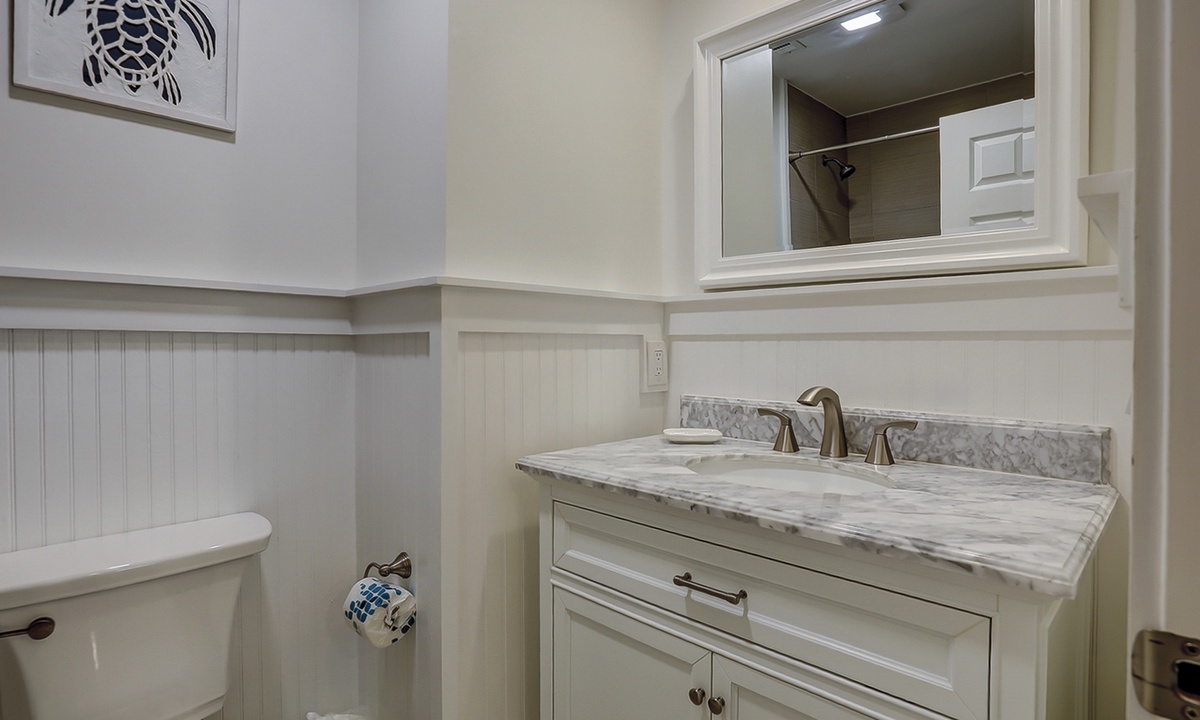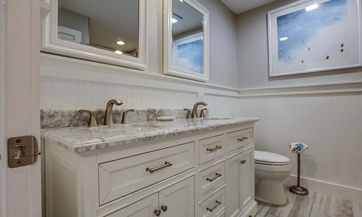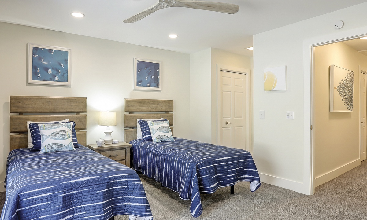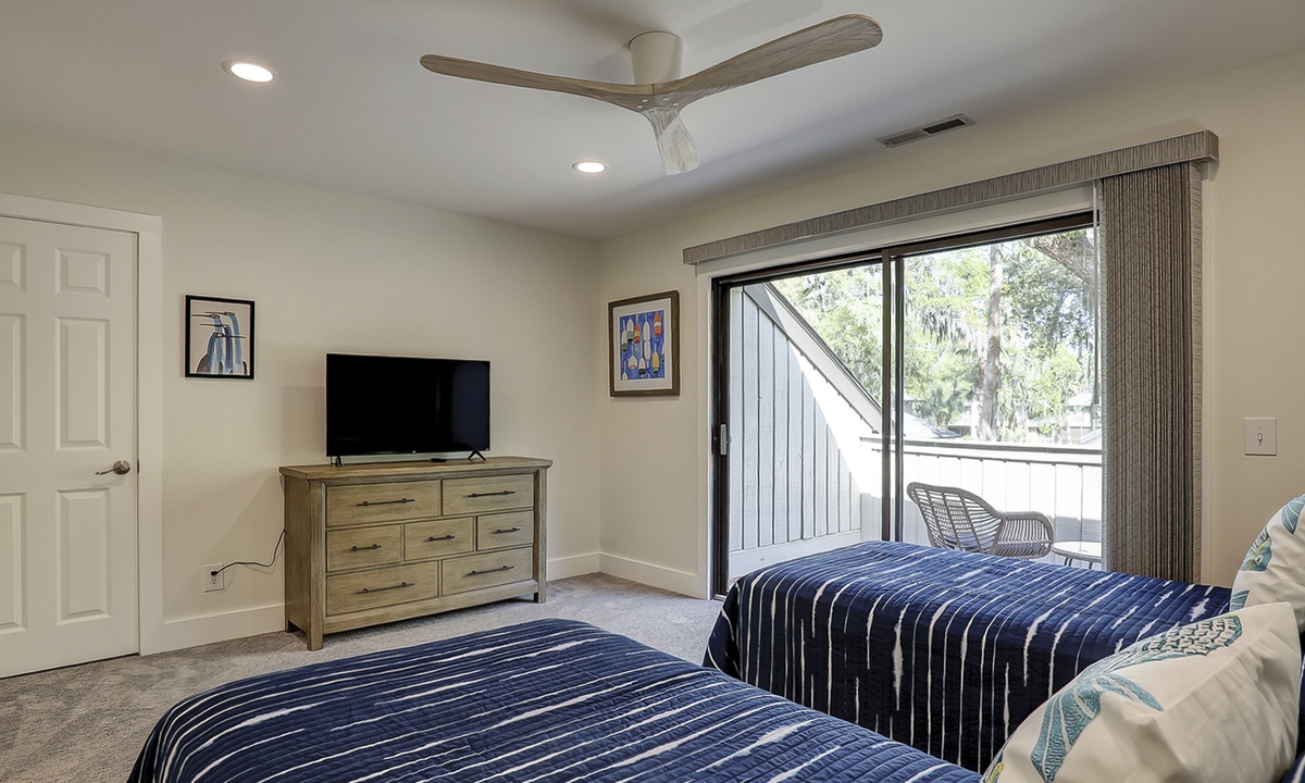 The 2nd level has a king bedroom with a Smart TV, desk area, a balcony overlooking the golf course, and a private bathroom with a tub/shower combination. Down the hall you'll find the 2nd guest bedroom with two twin beds, a Smart TV, private balcony overlooking the Tennismaster grounds and a private bathroom with a tub/shower combination.