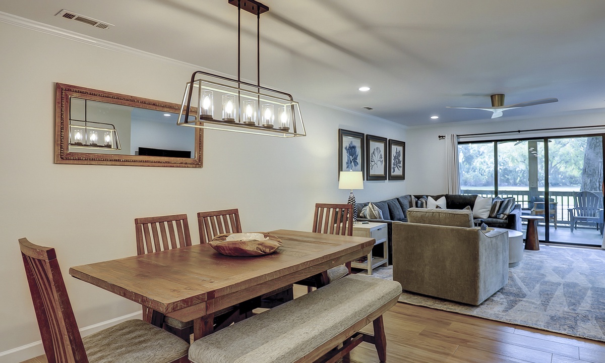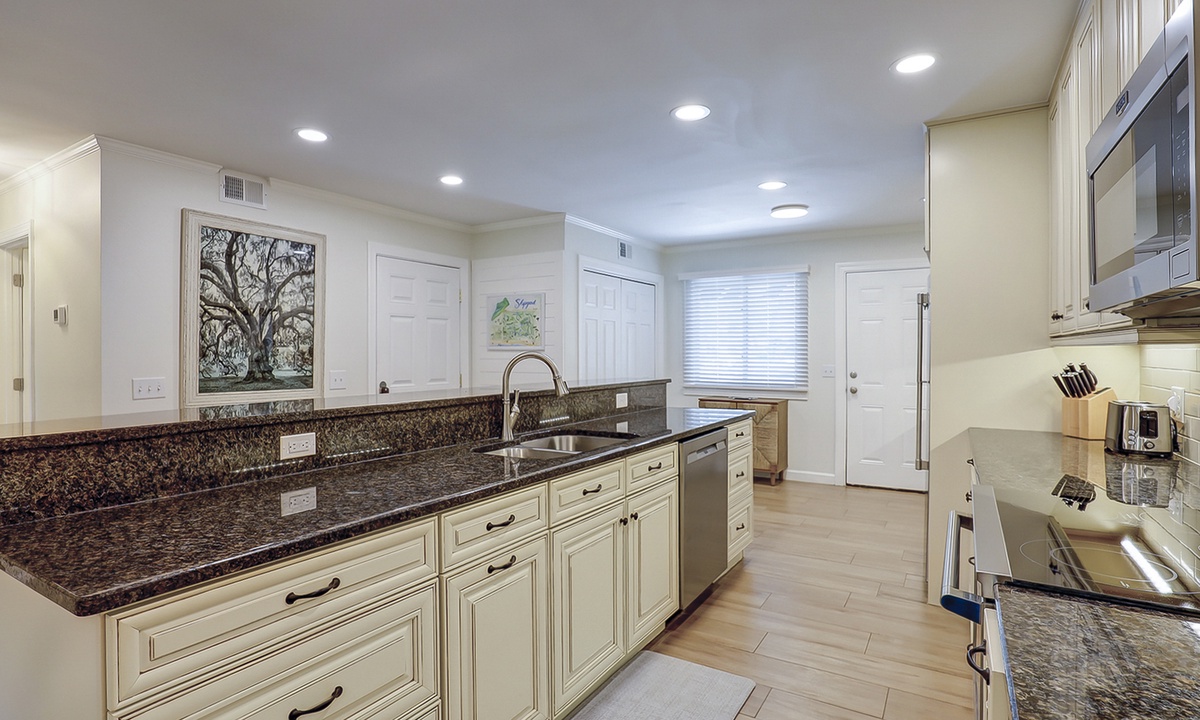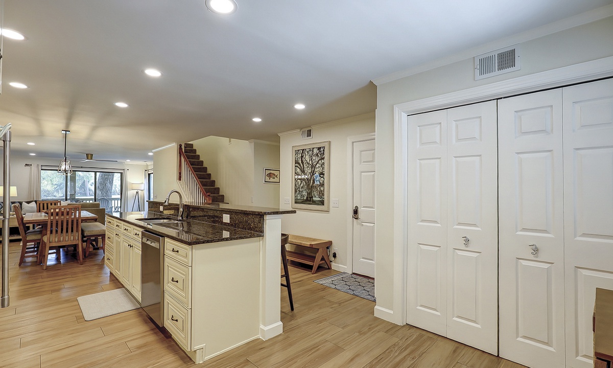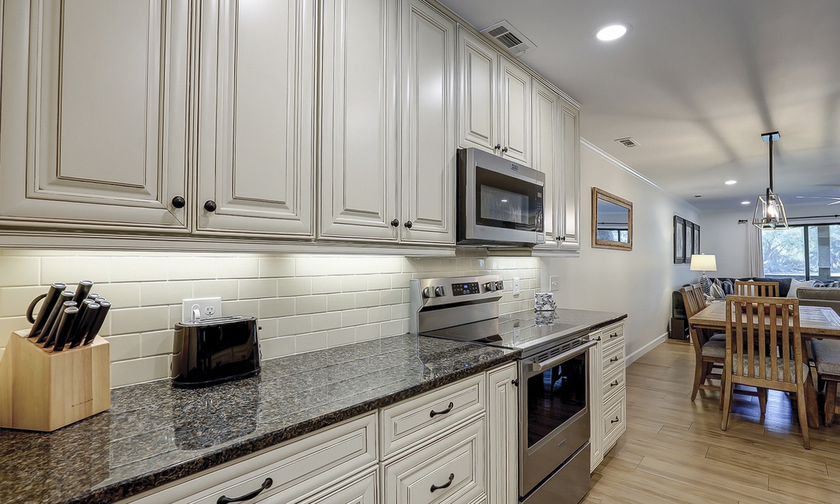 Back inside, you'll find a dining area with seating for 6, as well as additional seating at the kitchen bar. The well-appointed kitchen has granite counters, new stainless appliances and plenty of cabinet space.