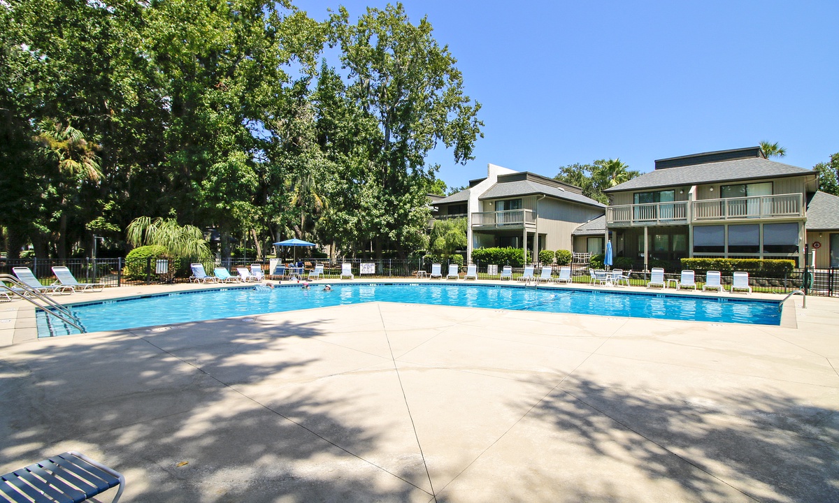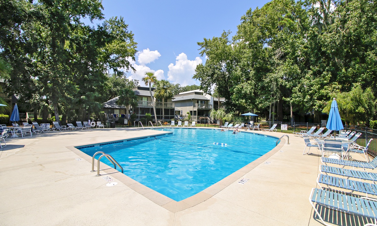 The Tennismaster villa complex is set in lush landscaping in Hilton Head’s Shipyard with an onsite pool and only a short 10 minute walk or quick bike ride on the plantation trails to the beach. All beach distances are measured from the center of the complex.