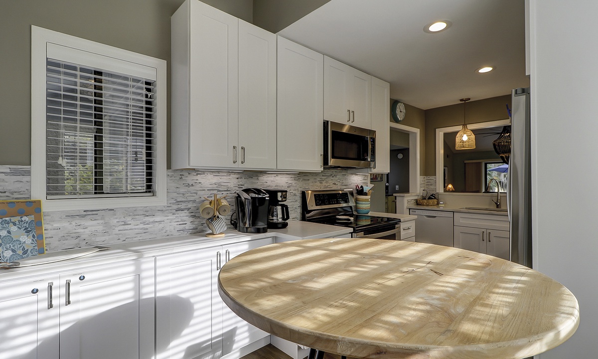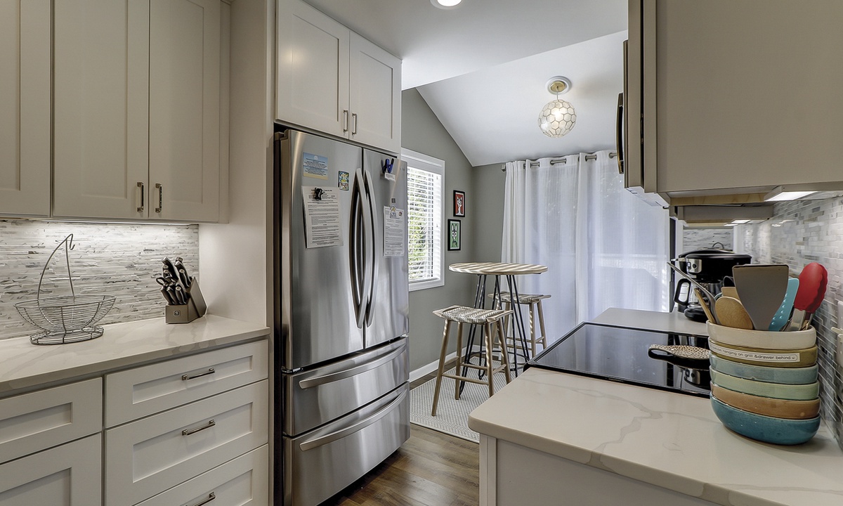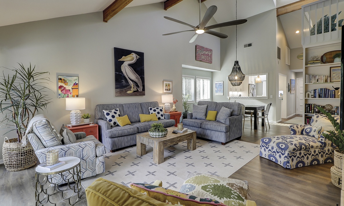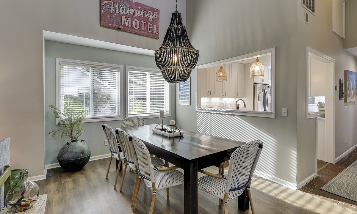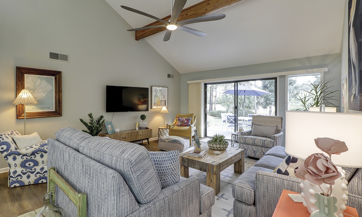 The open-concept floor plan makes socializing a breeze, and the comfortably furnished living area provides a Smart TV and access to the private patio overlooking the Brigantine Golf Course. This large patio space offers an outdoor dining table and a sprawling back yard area.