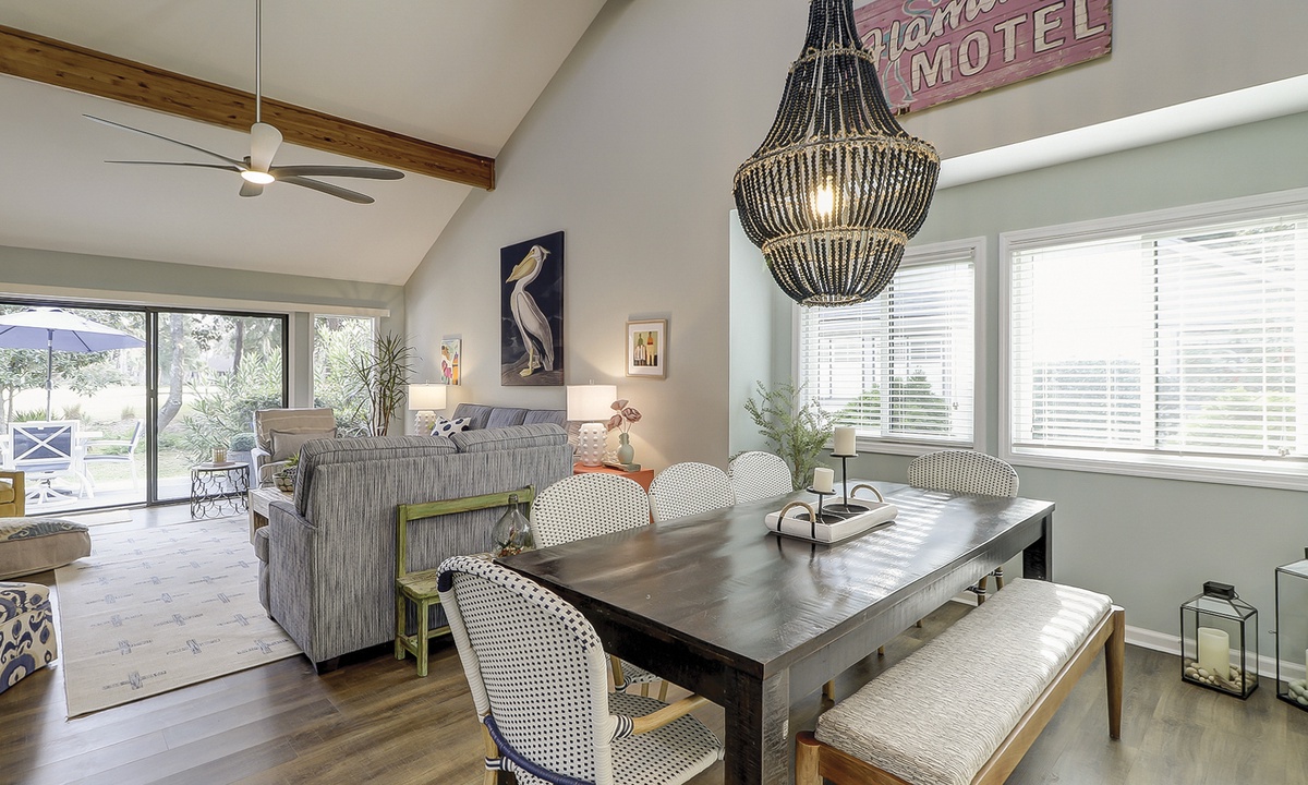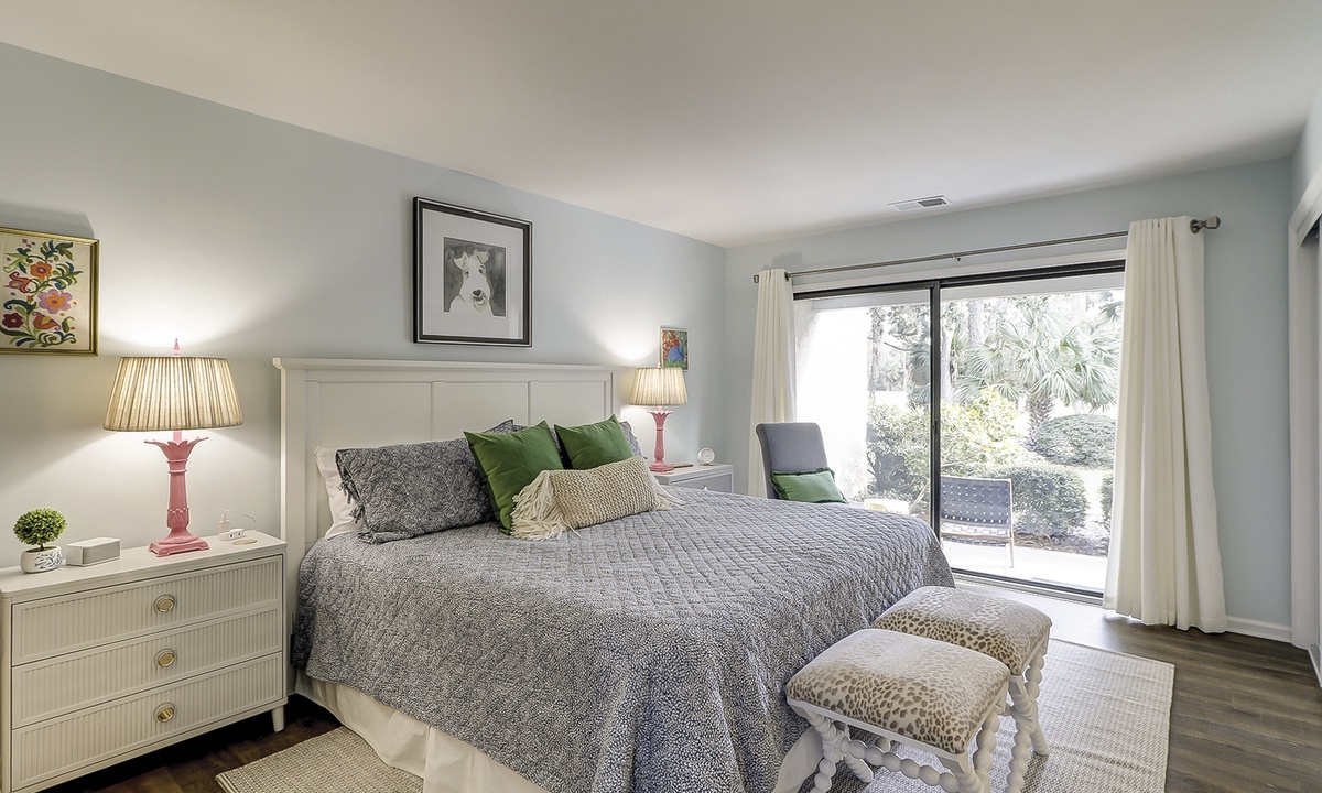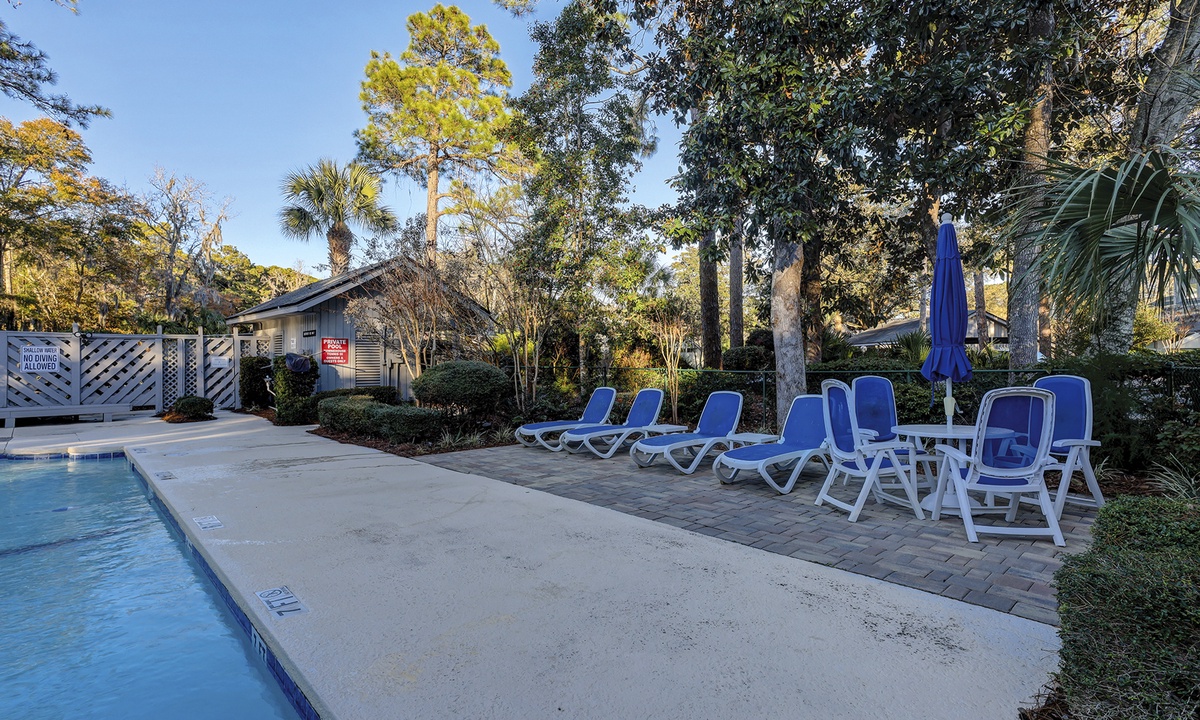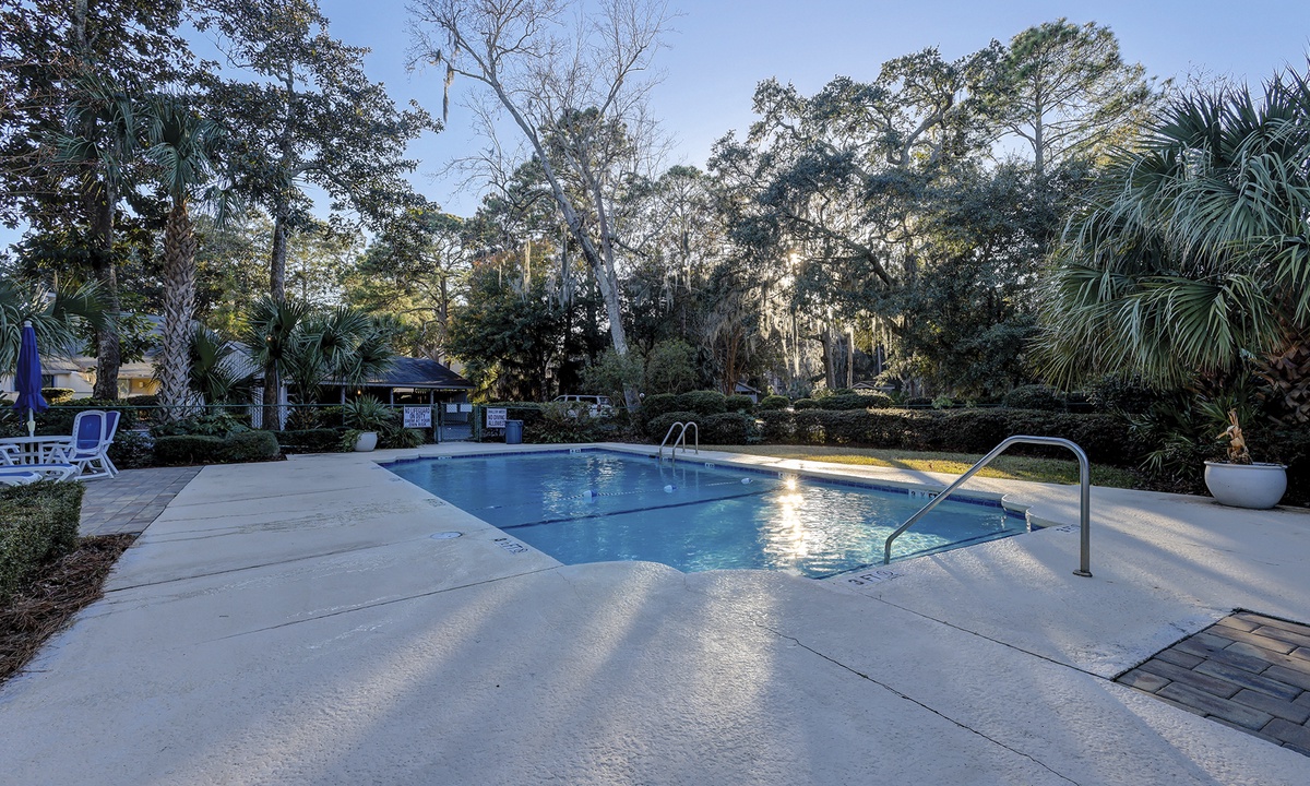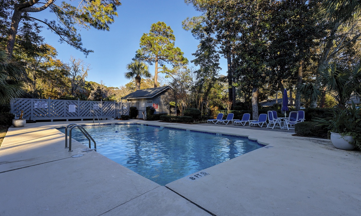 Townhouse Tennis III community is the perfect location for guests who enjoy a quiet respite with desirable amenities. Guests have access to 2 meticulously maintained clay tennis courts, a community pool and beautiful lagoon and golf course views. The Coligny Beach access is an .8 mile walk and Shipyard's private beach access is 1.5 mile walk/bike ride with free parking. The property is .2mi/5min walk to The Bank HHI (the island's newest restaurant/beer garden). The community has 7½ acres of heavily treed and landscaped surroundings. Guests are allowed to bring up to 2 vehicles with 1 dedicated covered parking space.