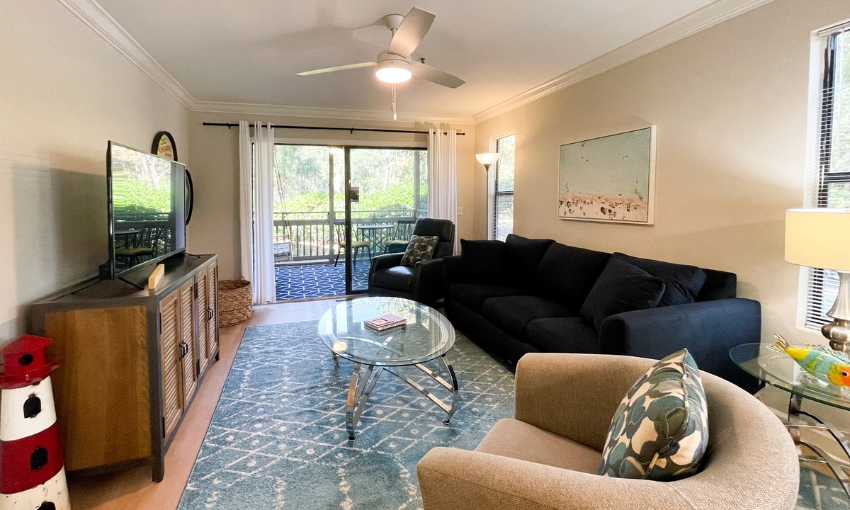 7101 Treetops is a beautiful, renovated 2 bedroom, 2 bathroom villa in South Forest Beach with resort style amenities and easy access to the beaches, activities and attractions of Hilton Head Island. This quiet community offers a peaceful retreat, located just far enough from the hustle and bustle, yet close enough to walk or bike to the beach and Coligny Plaza.