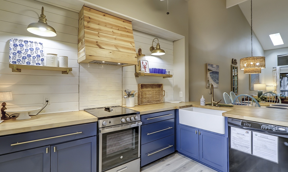 The fully renovated kitchen features a farm sink, stainless appliances and everything you'll need to cook meals for your family, including an instant pot, crock pot and small waffle maker.